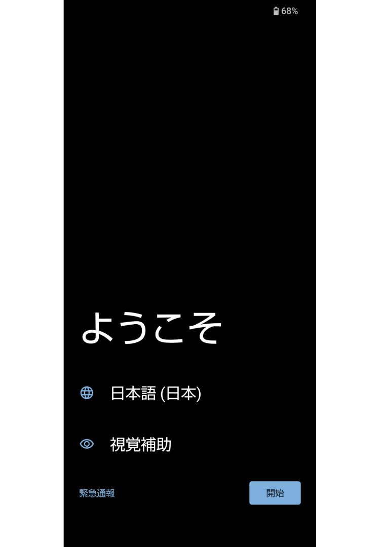 AQUOSスマホが再起動し、「ようこそ」が表示されたら初期化完了です。