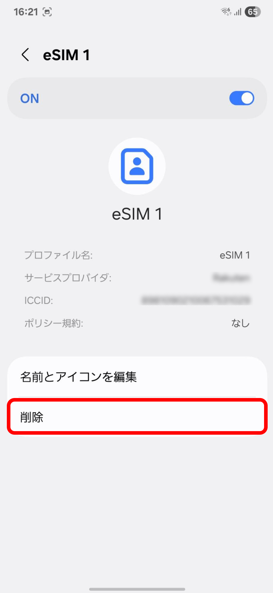 設定しているeSIMをタップ(画像だとeSIM 1)
