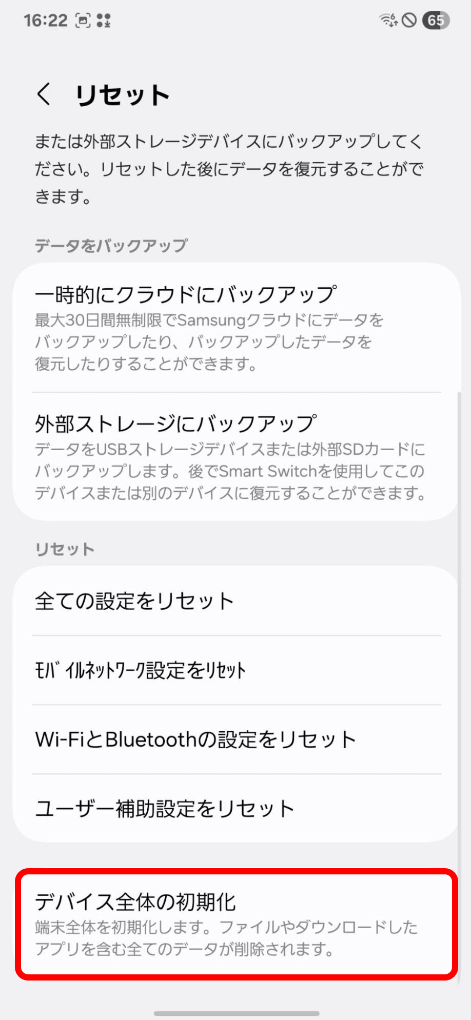 このページで紹介する「Galaxyスマホの初期化方法」でスマホのリセットを行えば、「スマホのデータ削除」と「Googleアカウントのログアウト」を同時に行うことができます。