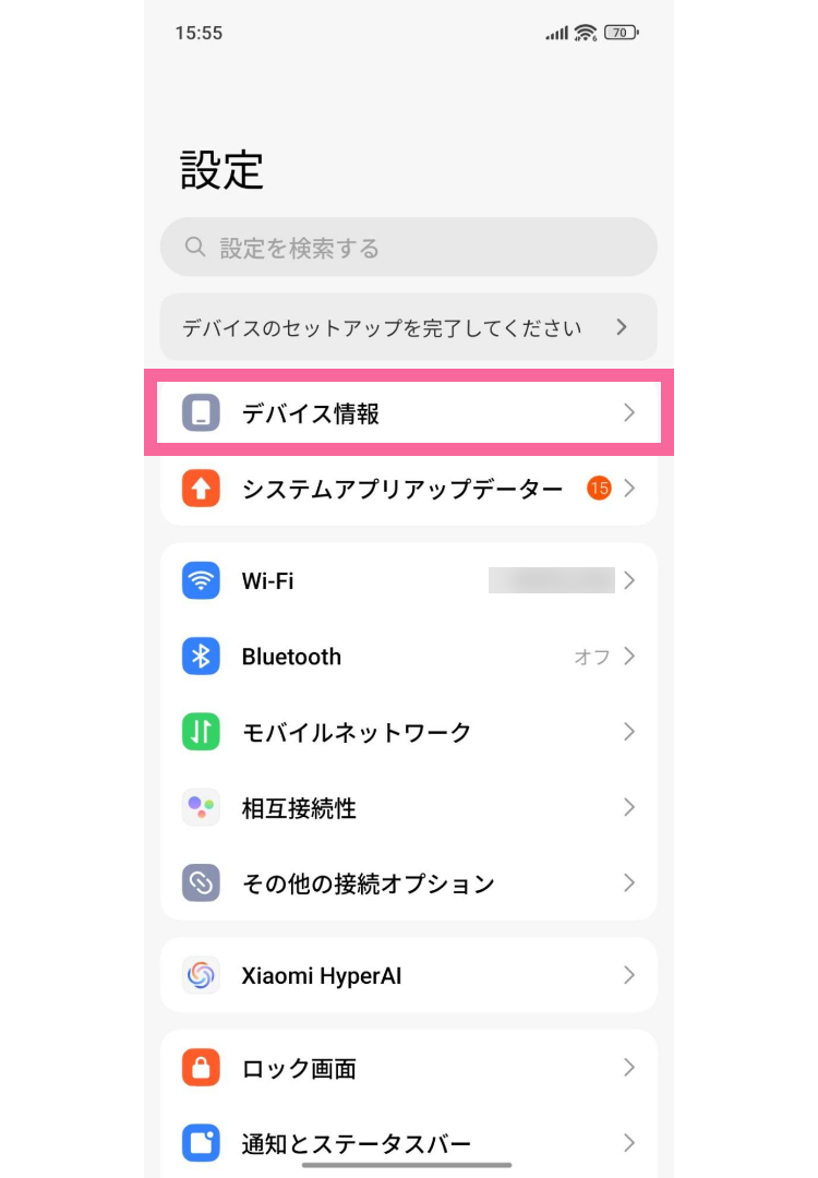 「設定」から「デバイス情報」をタップ